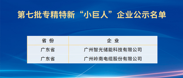 2025年10月,智光儲能、嶺南電纜入選國家專精特新“小巨人”企業(yè)。